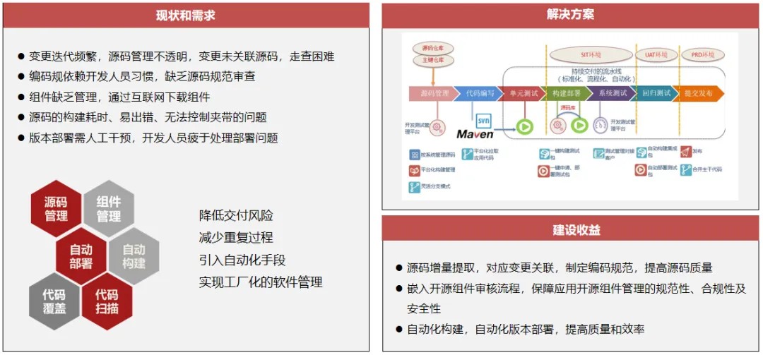 ● 一体化工作流:整合了需求、开发、测试、部署等环节,实现研发过程的无缝衔接。